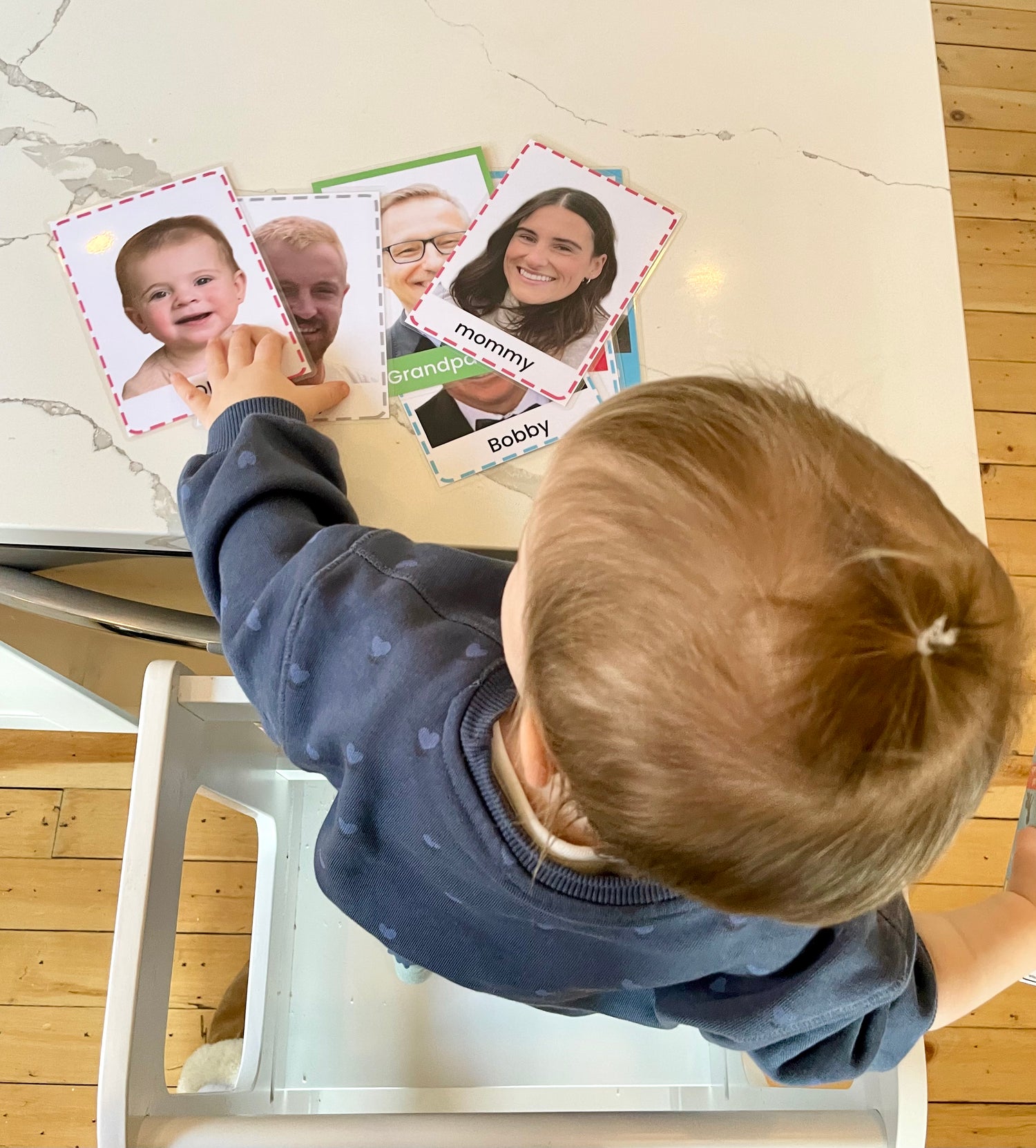 Upload your own image and choose a design and one line of text. Your little one will LOVE seeing their loved ones on flashcards - second only to actually being together in person.